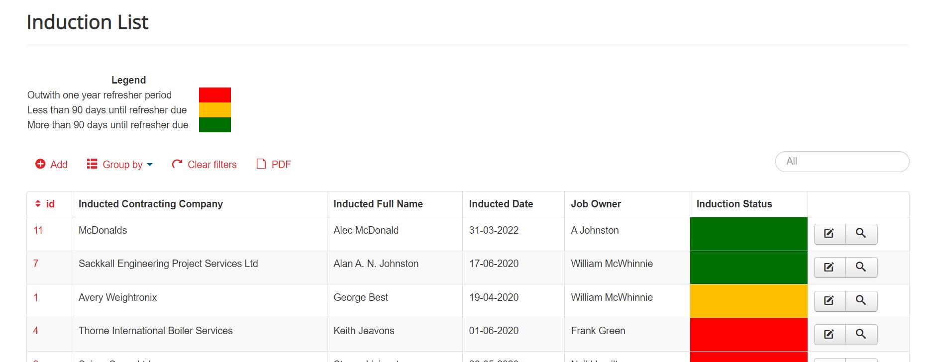 Set system reminders to Contractor owners to ensure that contractor documentation e.g. Insurances, inductions, training etc are kept up to date.